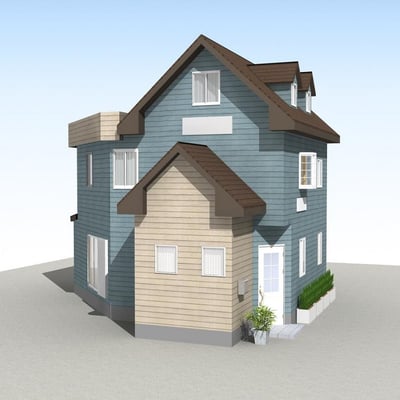 【A案】焦げ茶の屋根、ブルーグレーの外壁。落ち着いた優しい雰囲気