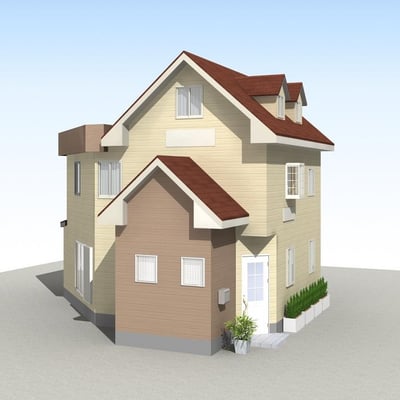 【A案】レンガ色の屋根にクリーム色の外壁。暖色系を使うと一気に可愛らしく明るいイメージに!ケーキ屋さんとかよさそう。