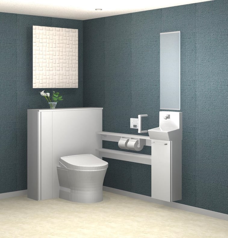 同じ収納付きトイレでも選ぶキャビネットの色が壁紙でトイレの雰囲気もガラリと変わります。せっかくのトイレリフォーム、お気に入りを見つけてみませんか?