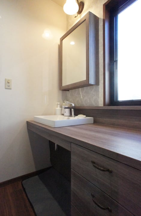 こちらの洗面コーナーができて、暮らしの中にゆとりが生まれましたと嬉しいご感想を頂きました。