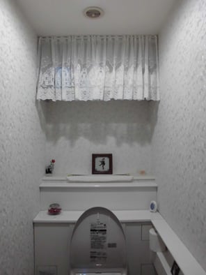 これまでは、トイレ奥の背面に棚があり、そこにトイレットペーパーのストックなどの置かれて目隠しカーテンをされていましたが、年齢を重ねられたM様には踏み台に乗って物の出し入れをするのはだんだん危なくなってきました。
