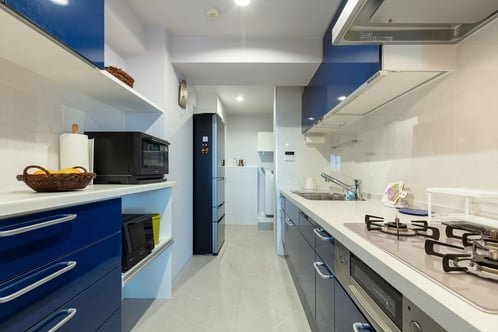 隙間のスペースは色々な家具を買い足していくうちにいつの間にか使いにくくなっていることもあります。床に色々なものを置かなくなるとお掃除もしやすくいつもきれいなキッチンを保つことができます。