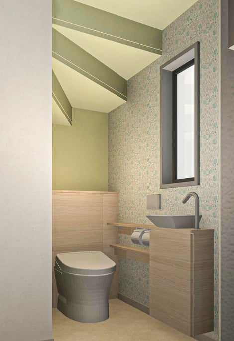 淡いグリーンの壁紙と合わせて明るく優しい雰囲気に仕上がりました。