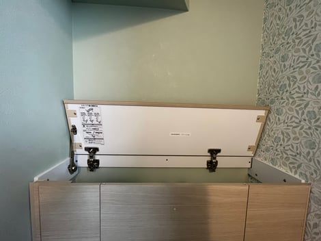 背面のキャビネットは上の蓋が開くようになっていて、中にペーパーのストックもしっかり入ります!