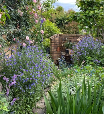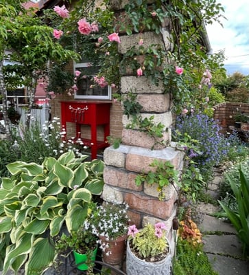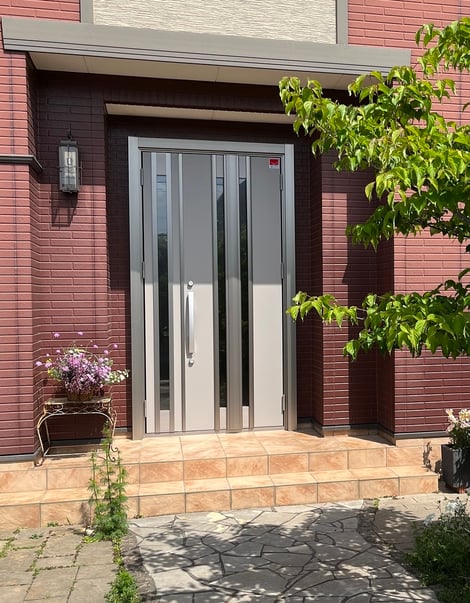 今の時期はお庭もお花であふれてとてもきれいなお宅。玄関ドアがきれいになって門から玄関までのアプローチも楽しくなります。玄関は「お家の顔」ですから大切な場所でもありますね。