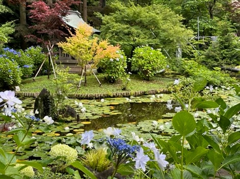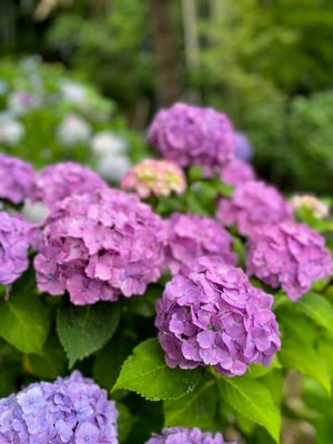 みどりに囲まれた庭園内には色とりどりそしてたくさんの種類の紫陽花がたくさん咲いていて、とても癒されます。