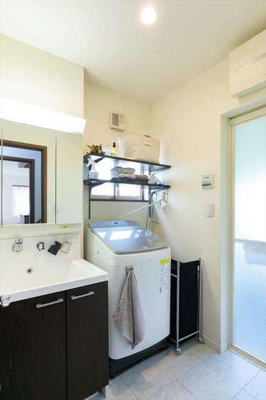 洗濯機の上につけた可動棚。