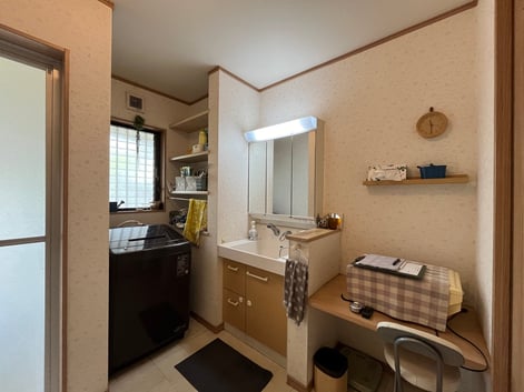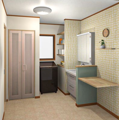 大きくデザインを変えるのか、洗面化粧台だけの交換にするか迷うところでもありますが、今回はスポーツをする息子さんのウェアの予洗いなどにも使う洗面コーナーということもあり、実用性重視で、同タイプの化粧台の交換をすることになりました。
