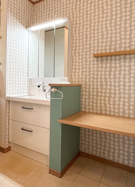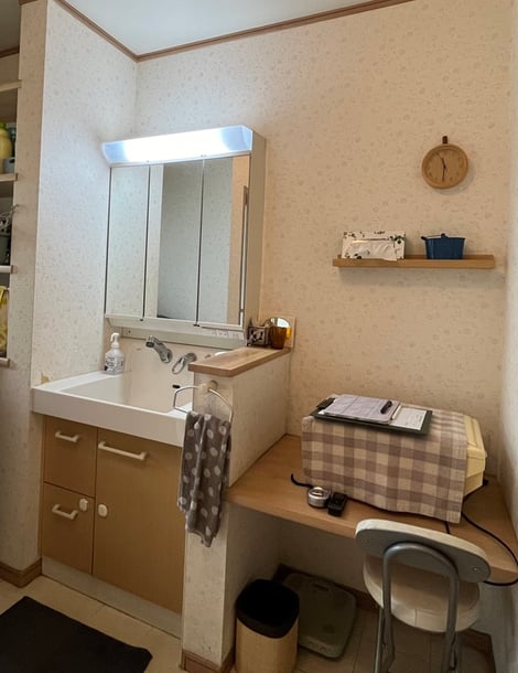 次に設置する洗面化粧台の選択肢は色々ありましたが、息子さんがテニスをしていて汚れ物も多く、洗濯物の予洗いもできるようにボウルの大きいリクシルのピアラを選びました。
