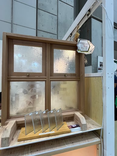 手作り感あふれるガラスを住宅解体時に引き取って、そのガラスを加工してつくった室内窓です。