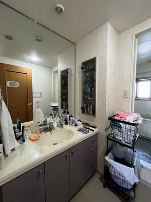 立派な洗面化粧台が入っているのですが、N様のライフスタイルには合わないようで、使い勝手を見直すことにしました。