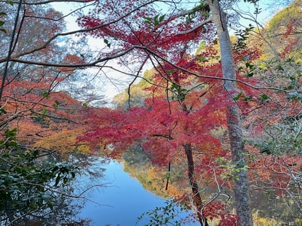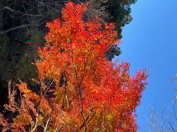 豊かな自然に囲まれた環境の中のもみじの風景、森林浴もできてとても癒されました。身近なところにも自然を感じられるところがありますね。