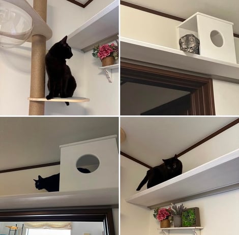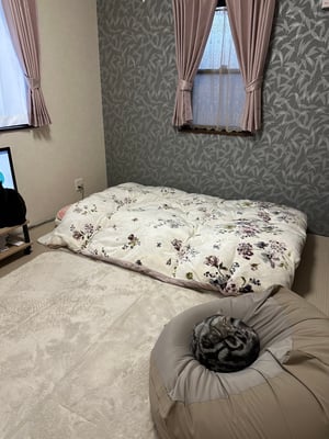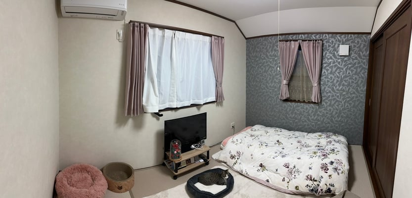 3匹の猫ちゃん達(しっぽだけ見えてる子も🐈)が思い思いに過ごしている様子もわかり、気に入ってもらえたようで良かったです。ゆっくりくつろげる寝室として使っていただけたら嬉しいです。