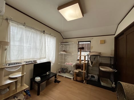 保護猫ちゃんたちのケージが置いてあったこちらのお部屋はもともと和室。畳の上にフローリング調のシートを敷いてご使用されていました。