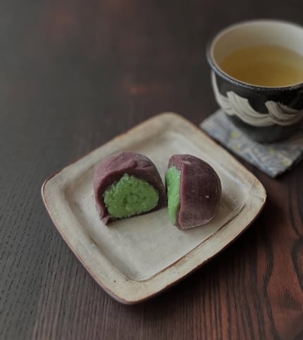 美しい練り切りとずんだがはいった大福は色のコントラストも美しくおいしかったです。