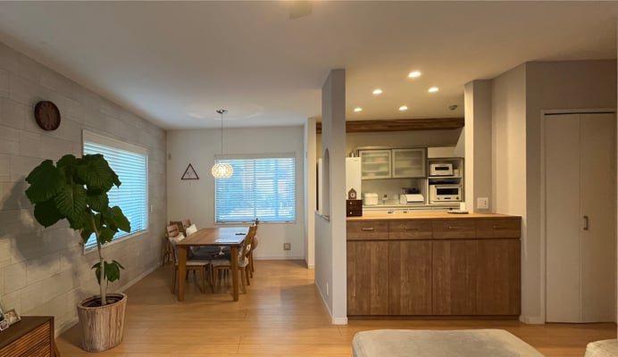 淡いグレーが加わることで落ち着いたLDKに仕上がりました。