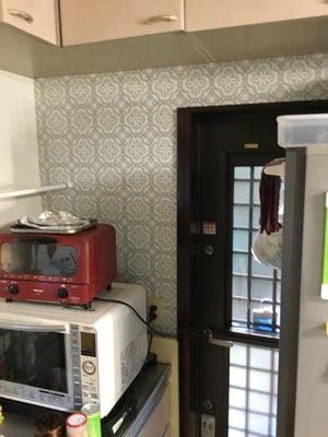 L型キッチンでしたが、炊飯器や電子レンジ、オーブントースターなどの家電を置く場所がなかったので、カウンターのコーナーはシンクの脇の空いているところにところ狭しとおかれておりました。