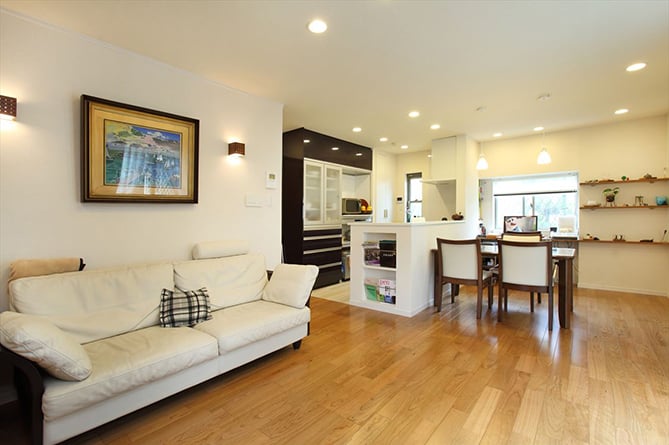 広く明るくなったキッチンでお料理を楽しんだり、ダイニングテーブル横でパソコンを開いたり、ソファでゆっくりくつろいでテレビを見たり、思い思いの時間を楽しめるLDKが実現しました。