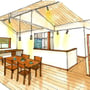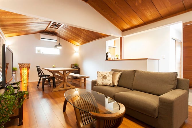 伝統的な日本家屋にお住まいのN様。力強い無垢の梁材、船底天井など美しい和風建築は残しつつも、家族で集まれる広くて明るいLDKを希望されました。 和室2間と納戸を取り込み、お気に入りの照明や家具を取り入れて、ヴィンテージ感あふれるカフェのような温かみのある空間に。色々な人を招いて一緒に食事をしたり、お酒を楽しんだり…おうちでゆったりくつろぐ楽しみが増えました。